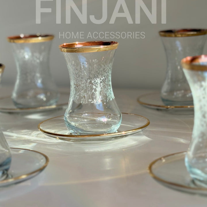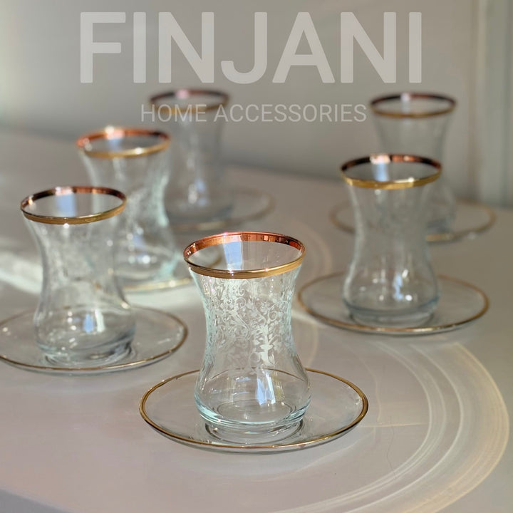 استكانات مورد مع ذهبي