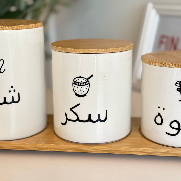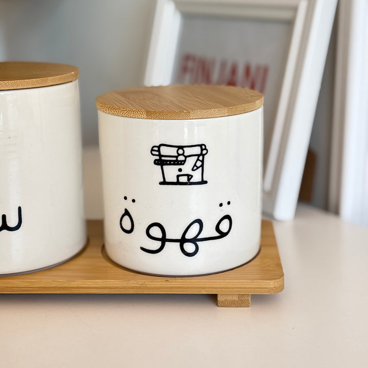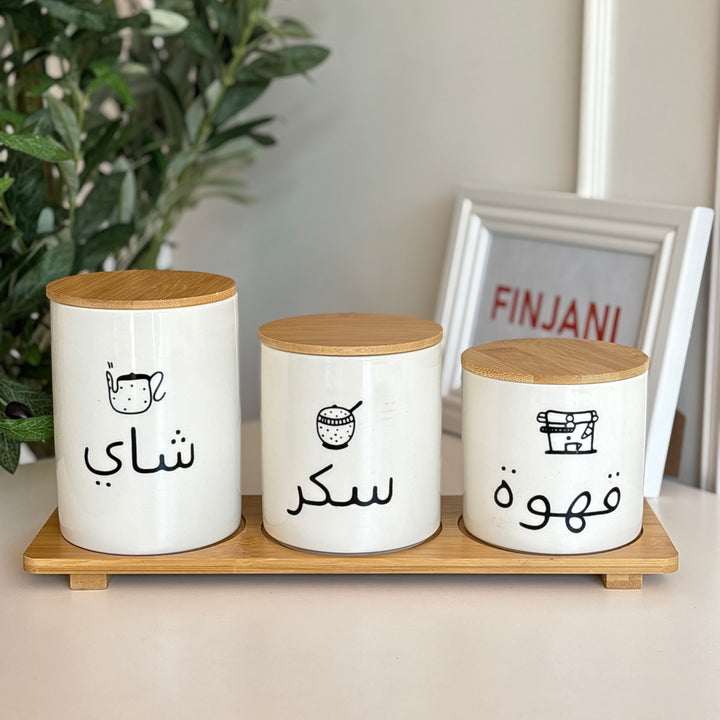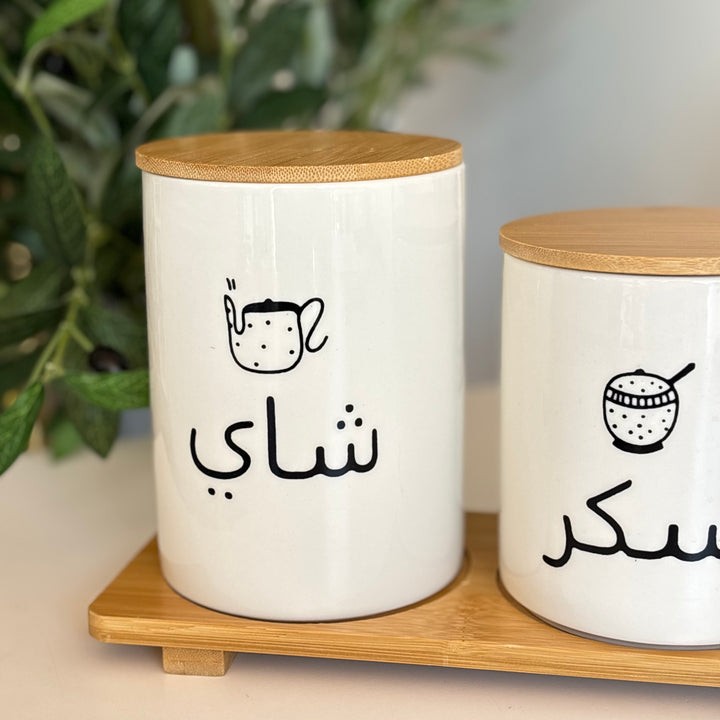 طقم سكريات بالعربي مع ستاند خشب بامبو