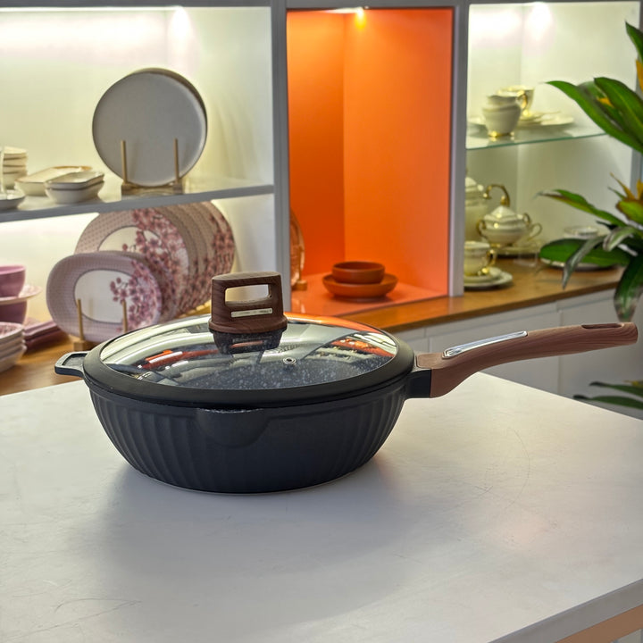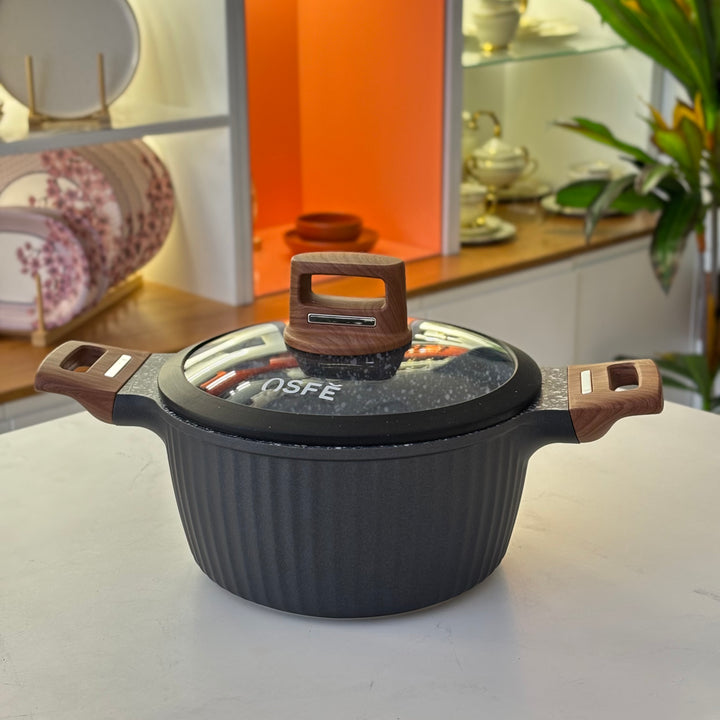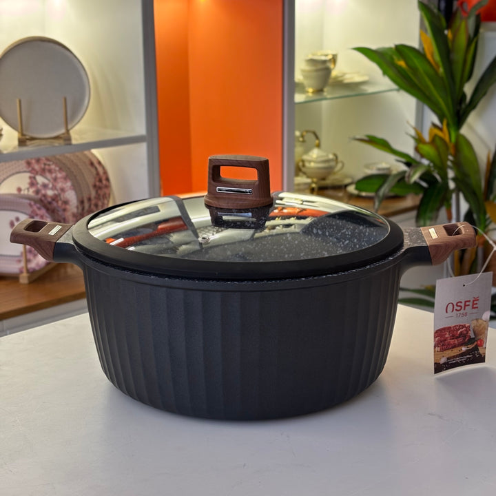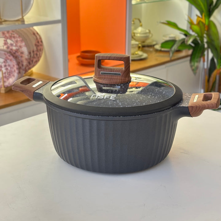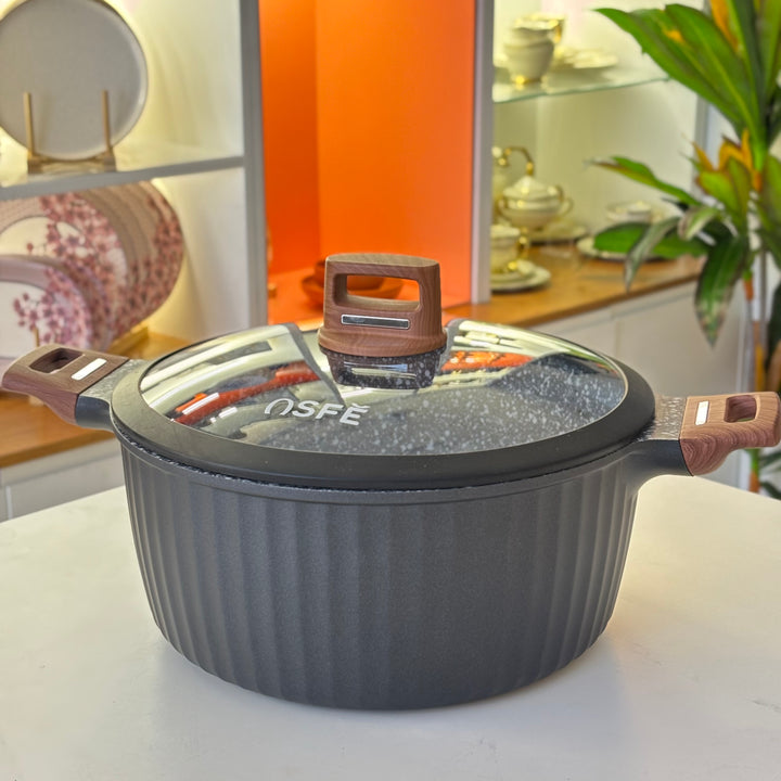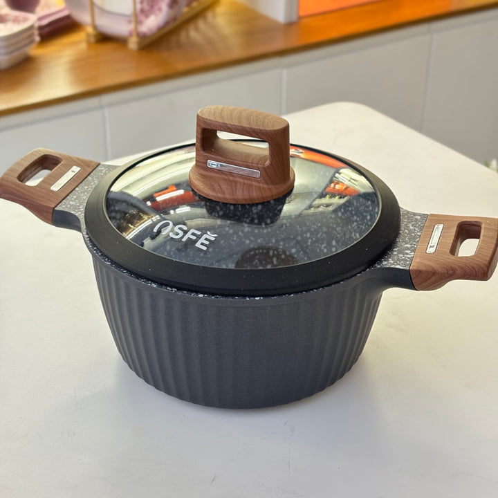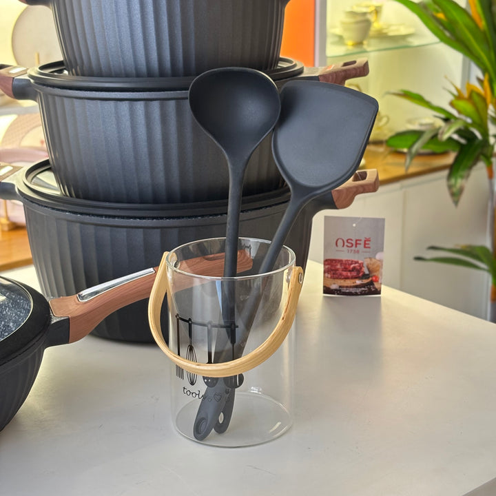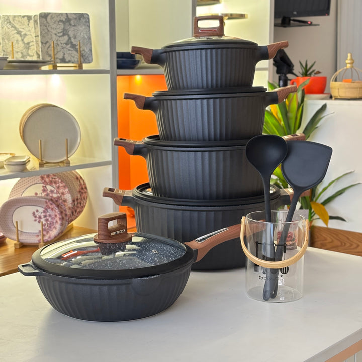 طقم طناجر جرانيت 12 قطعه مع هدية طقم كفاكير 5 قطع ذهبي