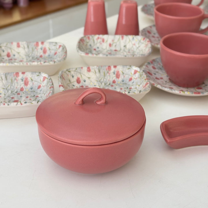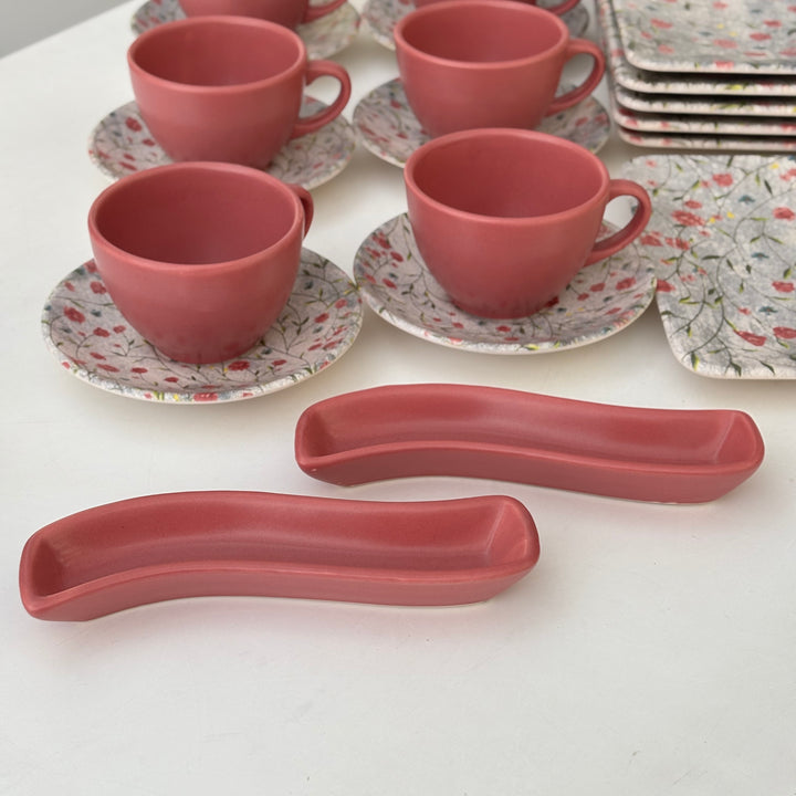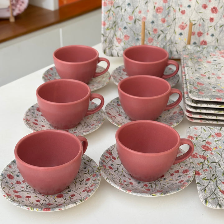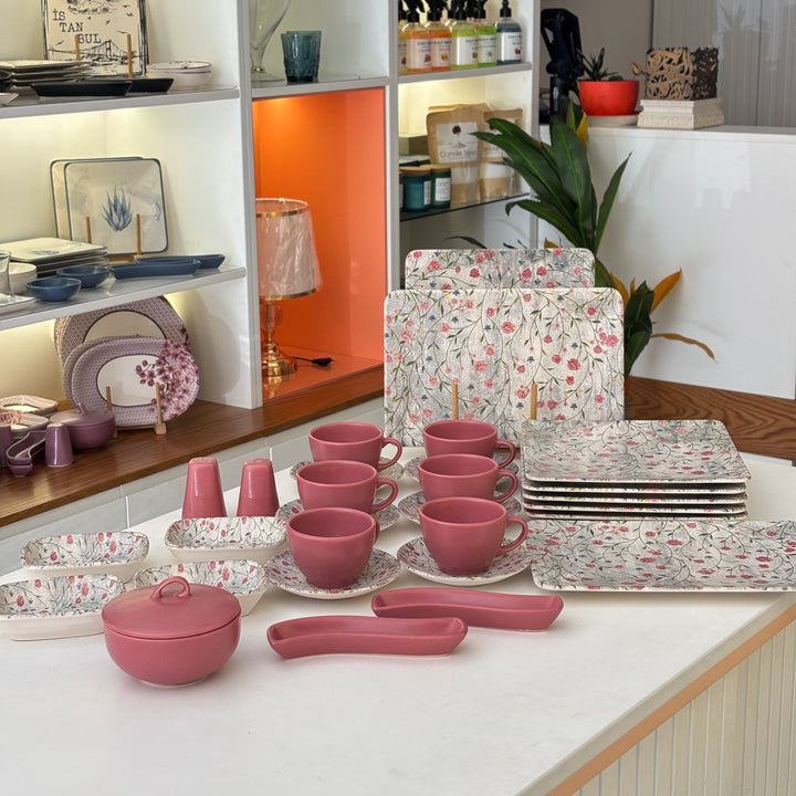 طقم فطور 30 قطعة Rose 🌺 مكون من ٦ فناجين مع ٦ صحون حجم نسكافيه وشاي ٦ صحون مربع قطرو ٢٦ سم ٤ صحون مربع مجور طول١٣ سم ب عرض ١٠ سم ٢ صحن...
