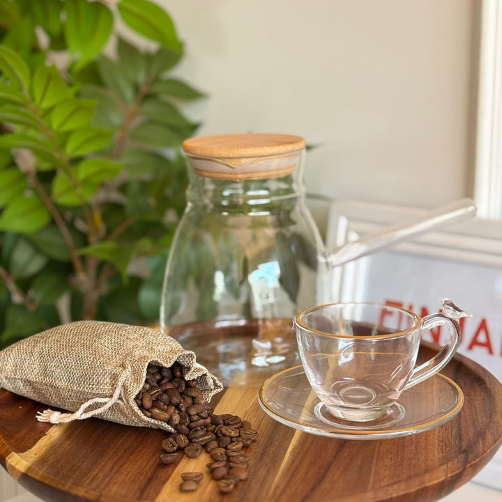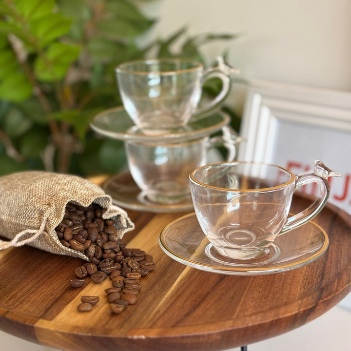 طقم فناجين قهوة شفاف وحز ذهبي عصفور 🐦⬛